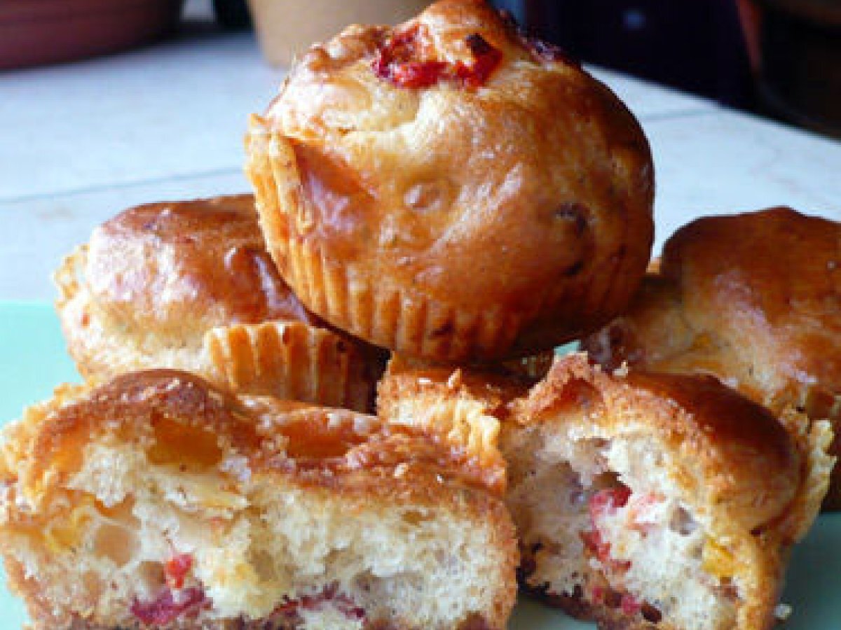 Petits cakes au jambon et tome des pyrénées et poivrons grillés
