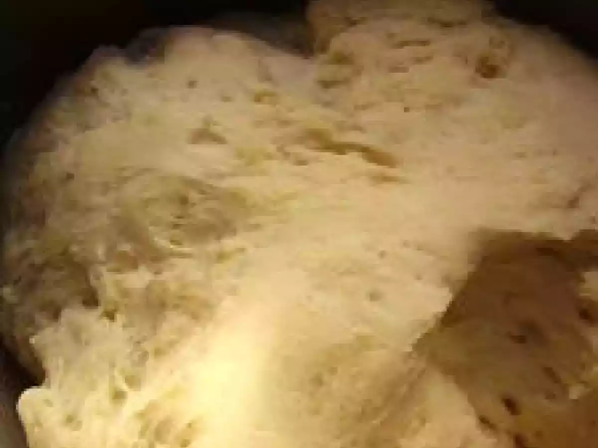 - A l'aide du crochet pétrisseur, pétrir la pâte en versant la farine en 3 fois dans le mélange eau-levure.