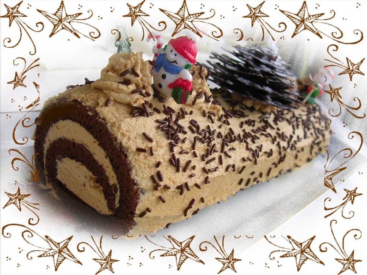 Voici une bûche avec un biscuit choco et une crème au beurre aromatisé au café. C'est tentant!