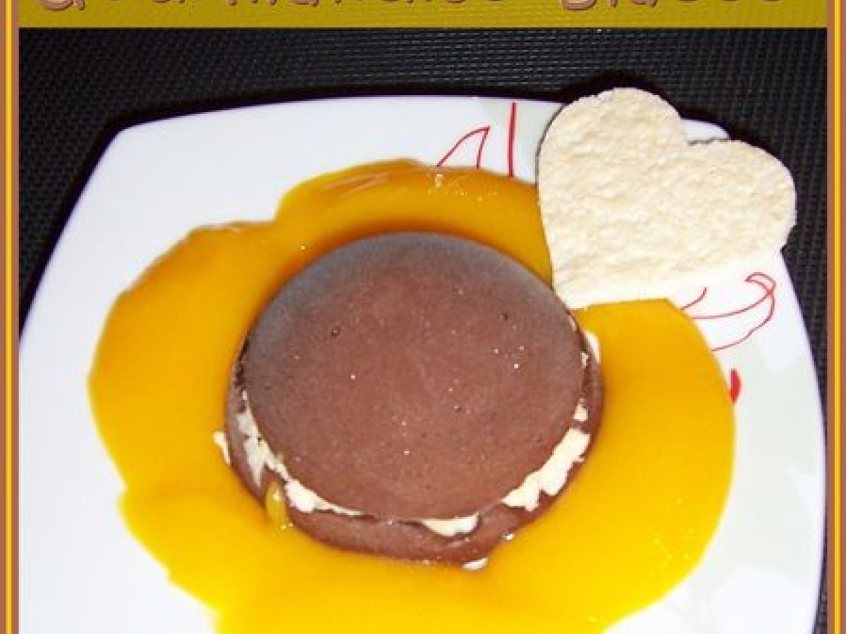 Un petit dessert délicieux, et très simple à réaliser. Ce sont des petits dômes glacés au chocolat et éclats de meringues, accompagnés de coulis de mangue.
