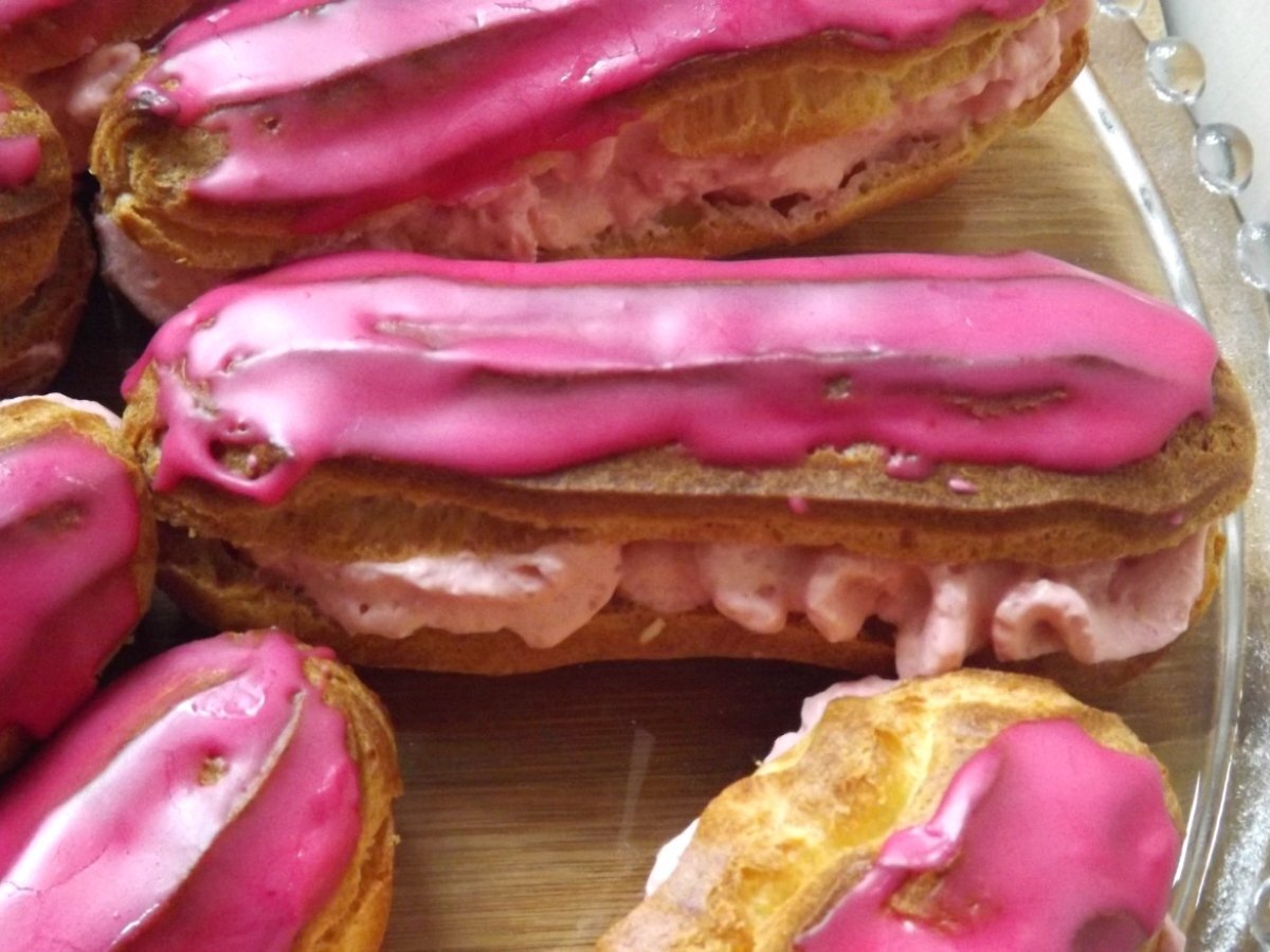 Une recette So Girly’, visuellement très attirante et gustativement surprenante avec une chantilly à la framboise légèrement acidulé. Pour la fête des grands mères, j’avais envie de faire une petite douceur à ma belle maman qui m’a donné l’amour de la pâte à choux (et son fils au passage). Cette douceur est surprenante au palais avec l’accord parfait du glaçage sur l’éclair et la chantilly aux notes acidulés.