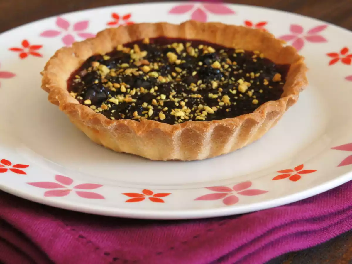 Tartelette de saison, bien sucrée, croquante et fruitée réalisée avec de la confiture de mûres