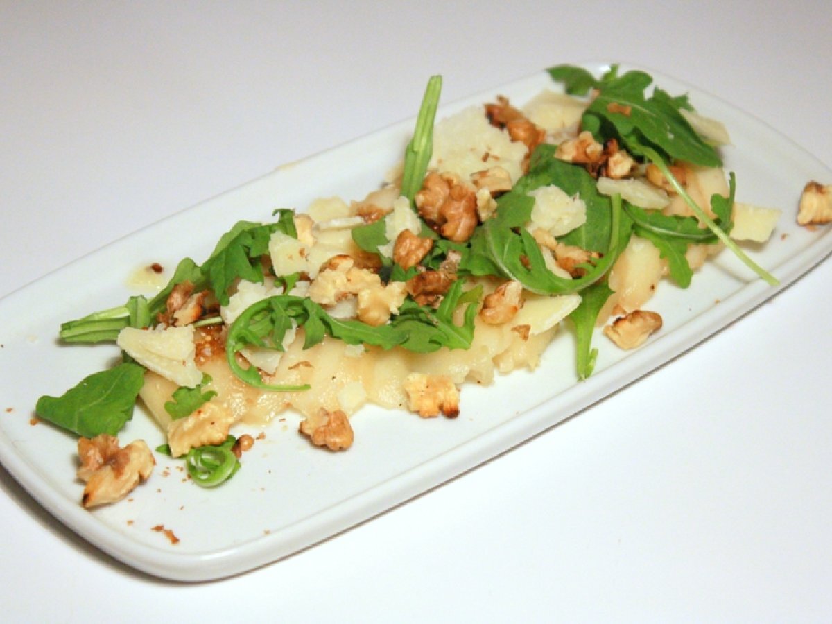 Carpaccio de poires, roquette, noix grillées & parmesan