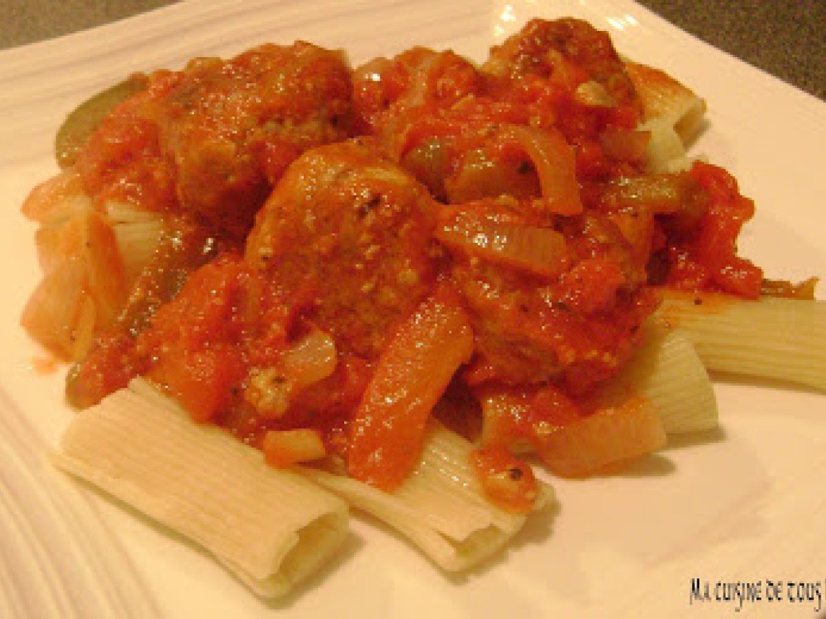 Les boulettes sont tout simplement d-é-l-i-c-i-e-u-s-e et que dire de la sauce! J'y ait rajouté du parmesan râpé et hmmm, un vrai délice!