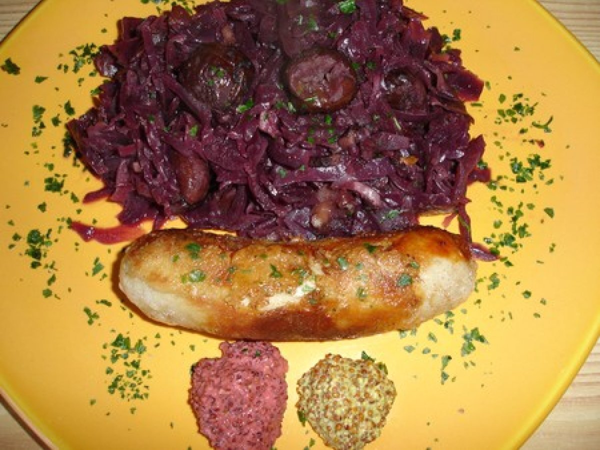 Chou rouge au wok à la graisse d?oie et aux 4 fruits