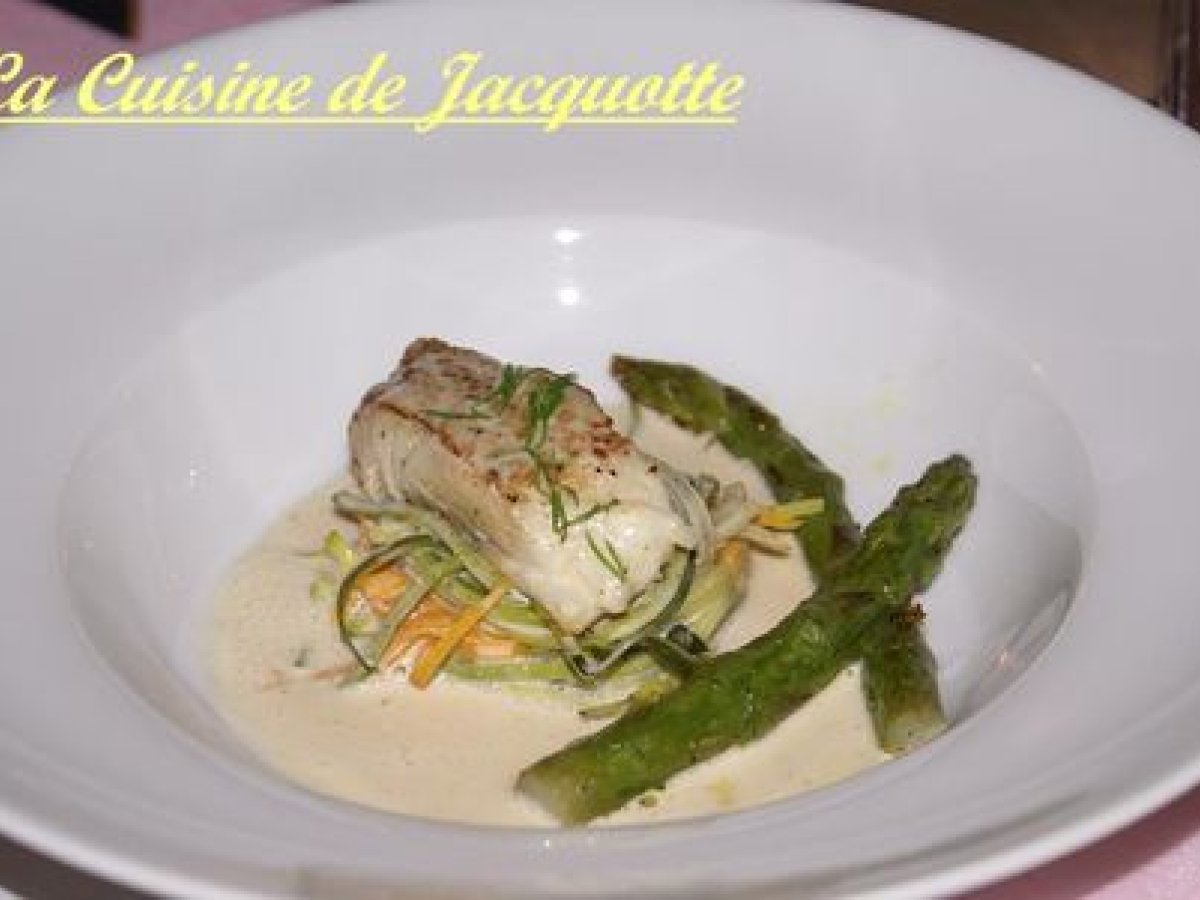 Dos de cabillaud poele sur spaghettis de legumes