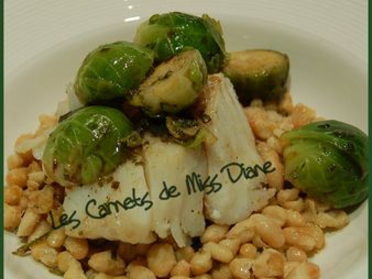 Morue fraîche ou cabillaud, haricots blancs et vinaigrette tiède aux choux de bruxelles