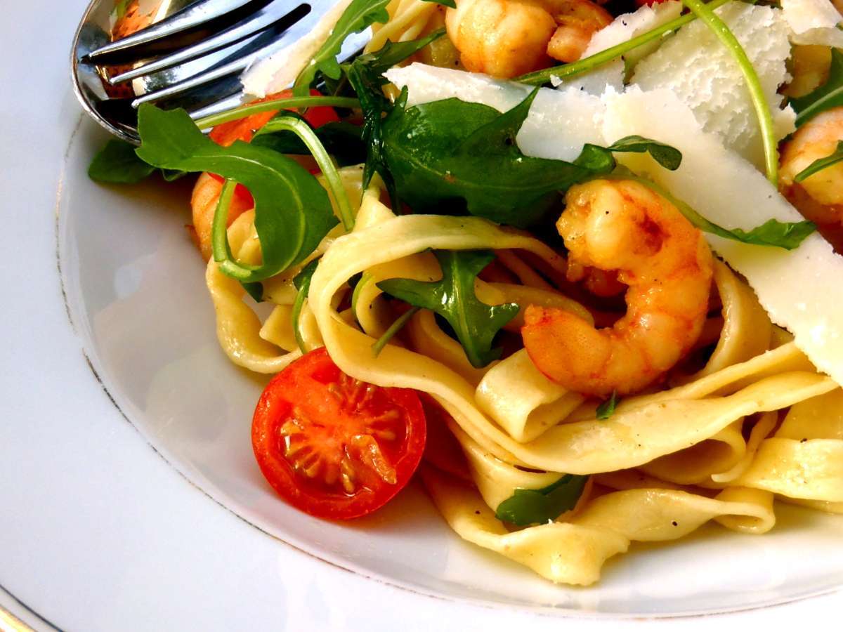 Pates maison aux crevettes à l'ail
