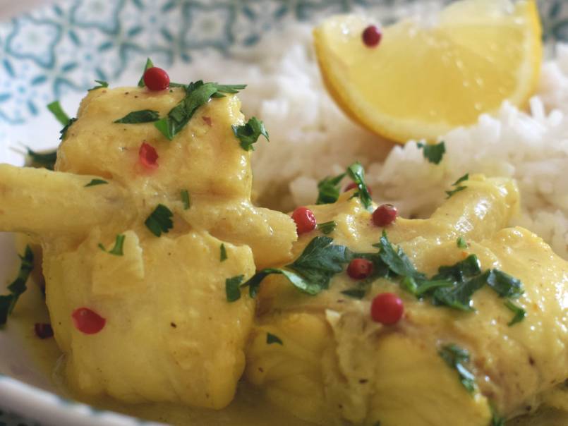 Queues de lotte au curry et baies roses de madagascar