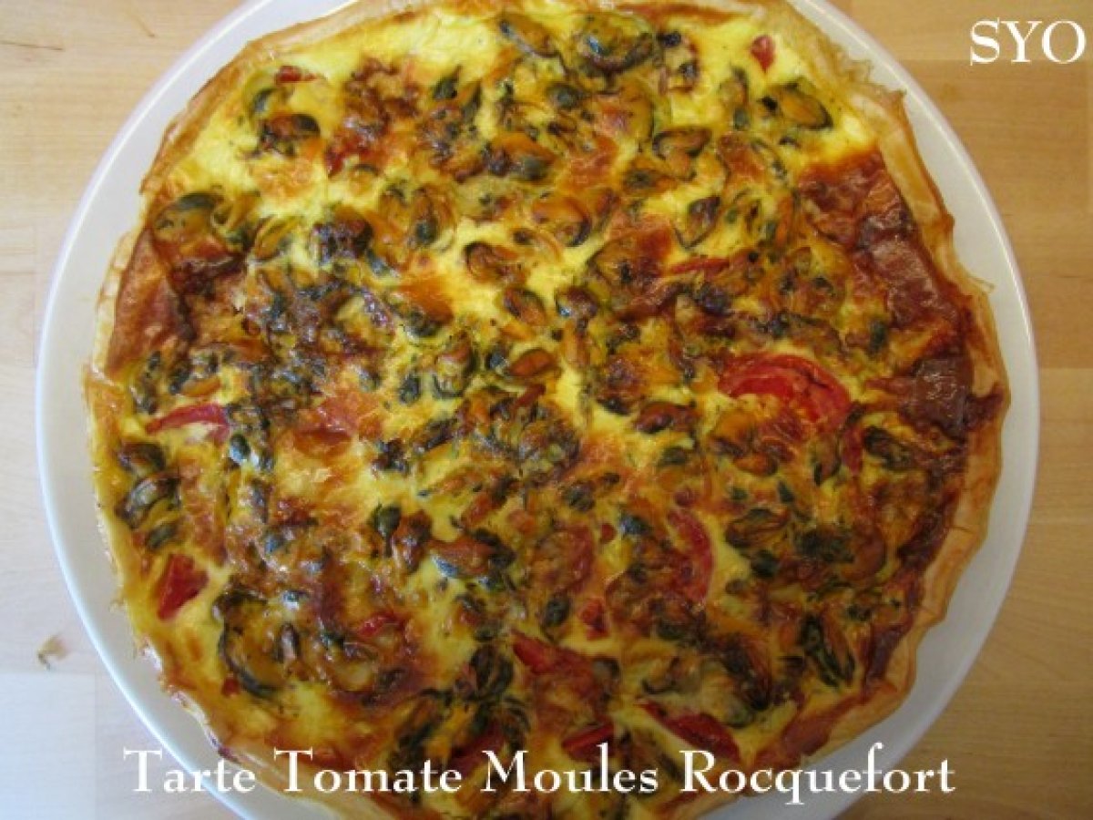 Tarte aux moules, tomates et roquefort, du petit bistro