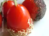 Ingrédients: Pour 12 sucettes de tomates aux graines : 12 tomates cerises 300 g de sucre en poudre 50 g de graines de sésame 30 g de graines de pavot Pour une...