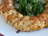 Avec sa forme élégante et sa pâte croustillante, cette couronne au saumon est un véritable bijou culinaire. Ajoutez quelques graines de sésame ou d’herbes fraîches pour encore plus de style. À servir en entrée ou au centre de la table pour un effet "wahou".