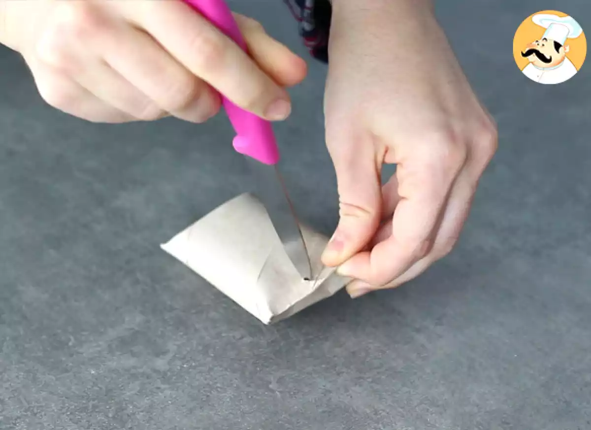 A l’aide d’un couteau, faire un trou sur l’un des bords repliés.