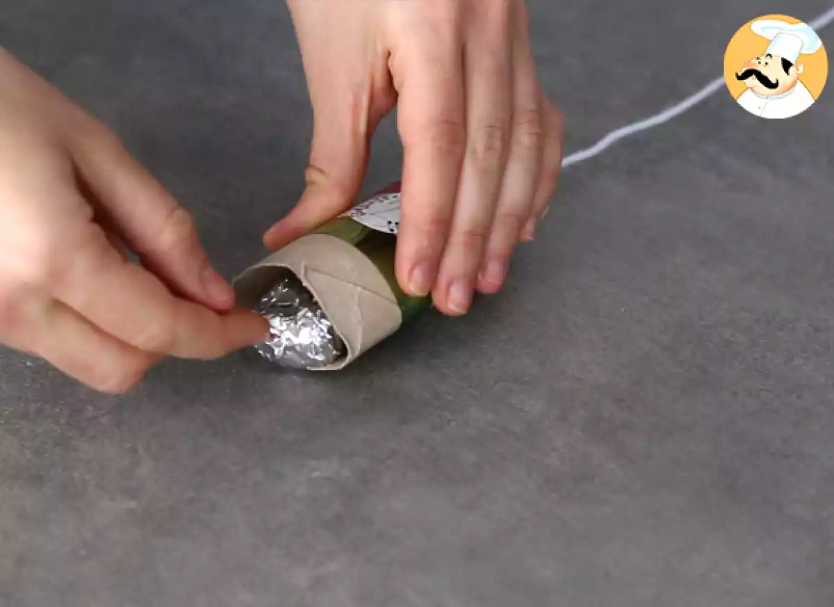 A l’intérieur, mettre un chocolat ou un cadeau (ici, nous avons emballé des chocolats maison dans du papier aluminium). Refermer le rouleau transformé en boîte.