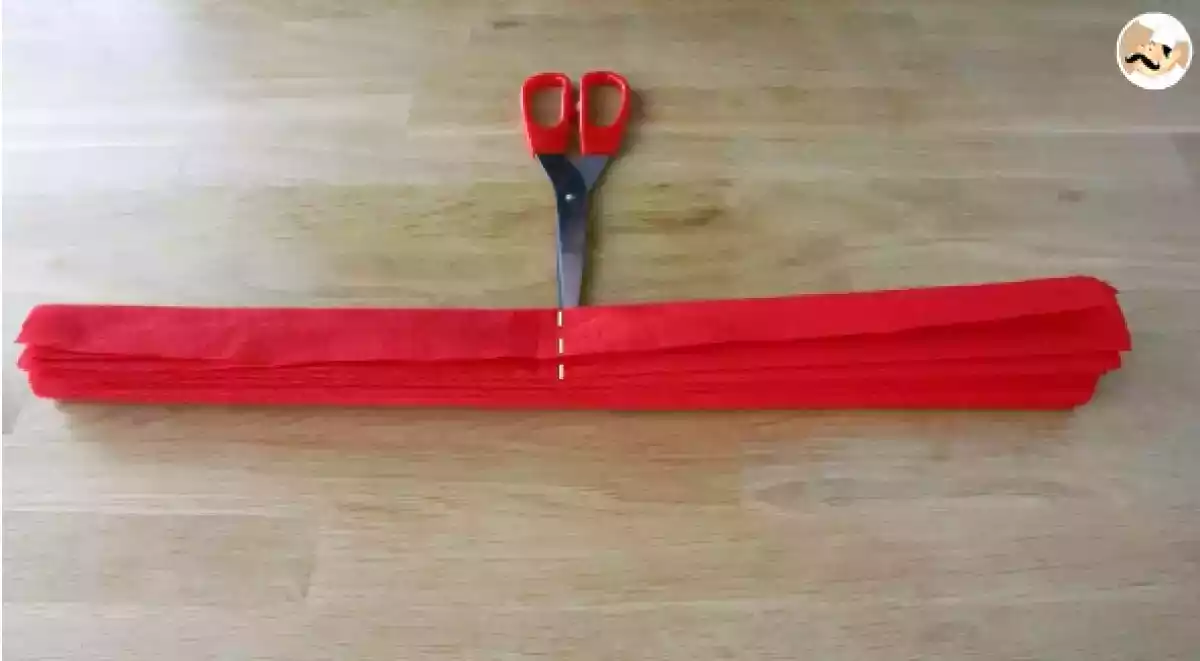 Sur une surface plane, dérouler le papier crépon 6 fois puis couper. Une feuille équivaut à environ 50 cm de large.
