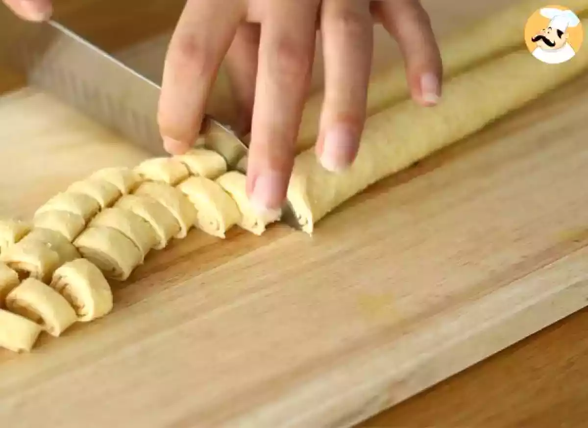 Placez votre pâte feuilletée ainsi enroulée 15 minutes au congélateur afin d'en faciliter la découpe.