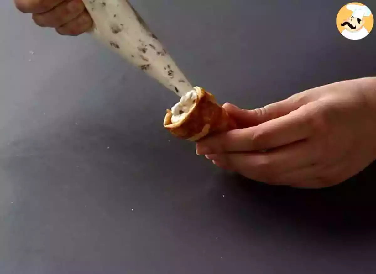 Garnissez vos carottes feuilletées avec la farce présente dans votre poche à douille jusqu'à la surface.