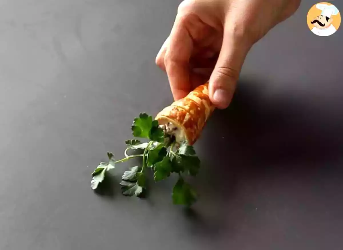Plantez une feuille de persil dans votre garniture histoire de donner un air "fanes de carotte" et ainsi finaliser votre apéritif comme il se doit.