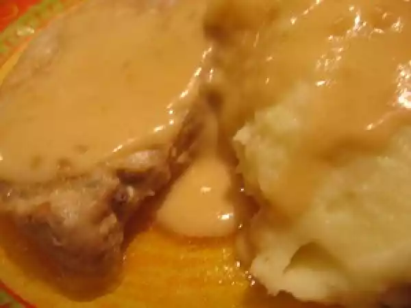 Cotes de porc au choux de bruxelles, sauce au poivre