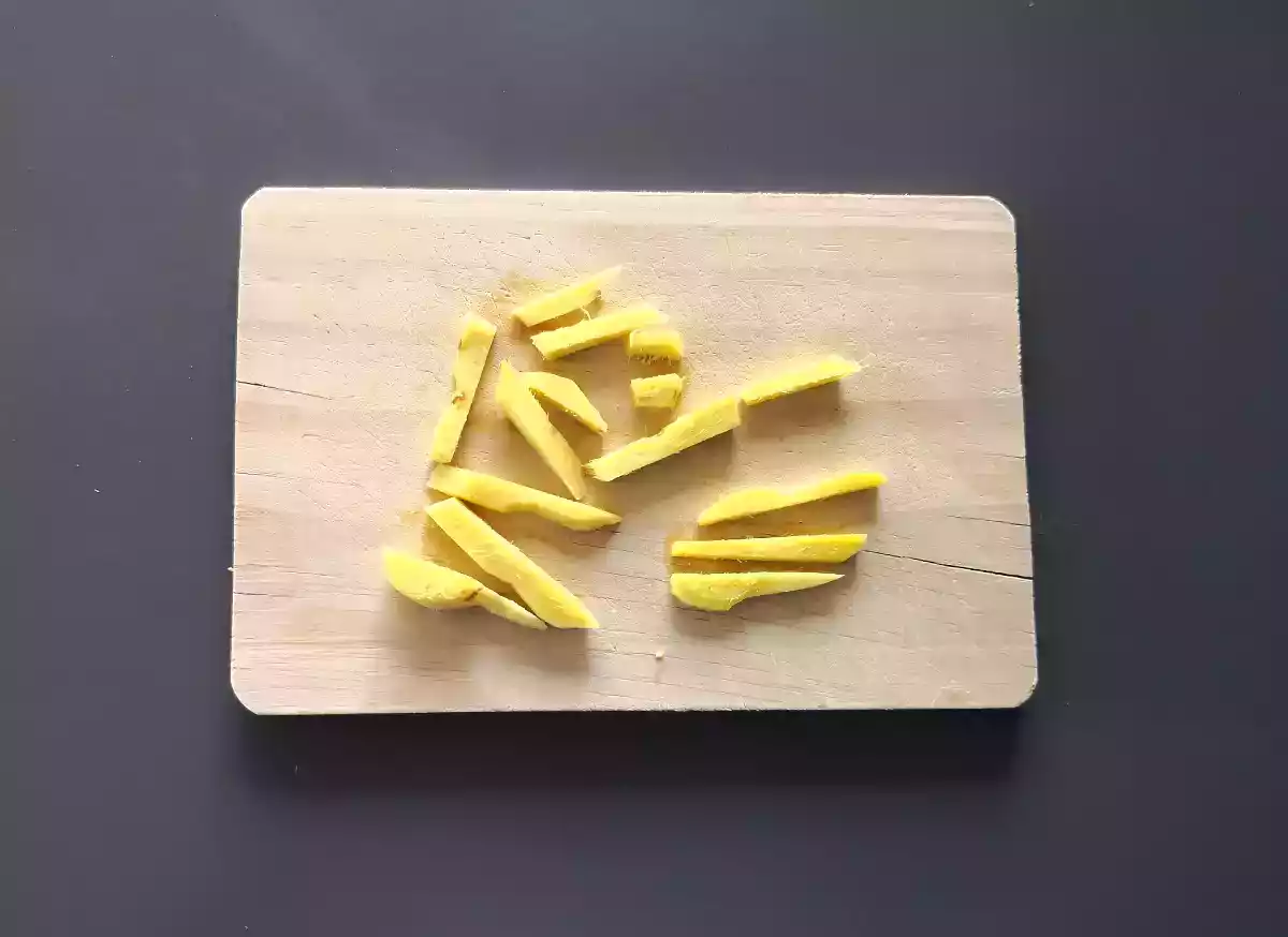 Éplucher le gingembre (vous pouvez vous aider d'une petite cuillère cela marche très bien!) et le couper en fines lanières.