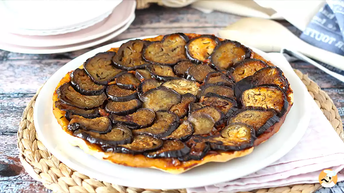 - Le dressage: Badigeonnez le fond d'un plat à tarte avec du miel et parsemez-y un peu d'origan séché. Disposez par-dessus les rondelles d'aubergines en les chevauchant. Etalez la sauce tomate par-dessus puis ajoutez la pâte. Scellez bien les bords, piquez le dessus à l'aide d'une fourchette et laissez cuire 30 minutes à 180°C.
