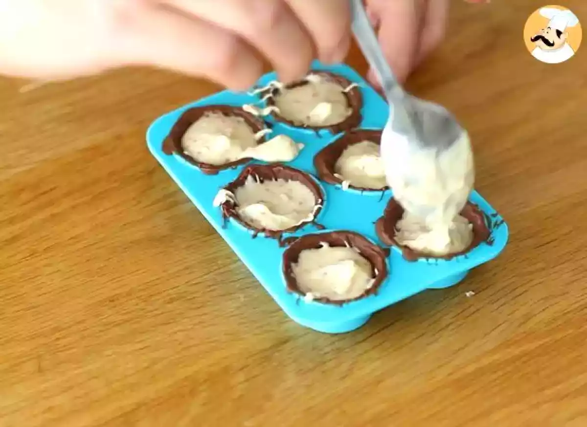 Faites fondre votre chocolat au micro-ondes. Avec un pinceau, tapissez le fond de vos moules en silicone (le fait d'utiliser du silicone facilitera le démoulage). Mettez au frais 10 minutes afin que le chocolat prenne et répétez l'opération.