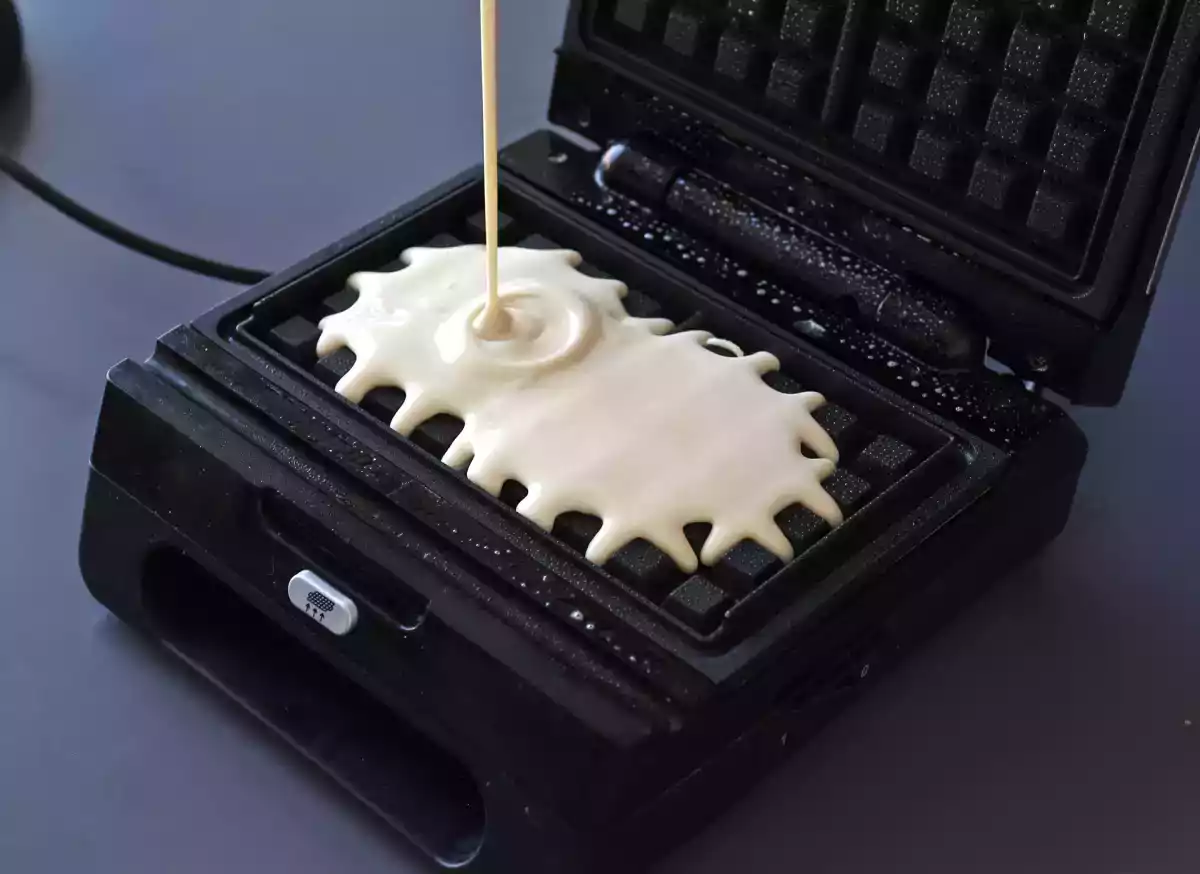 Graisser le gaufrier pour éviter qu'il ne colle. Versez ensuite la pâte et faites cuire les gaufres pendant environ 3 minutes (en fonction de la puissance de votre gaufrier).