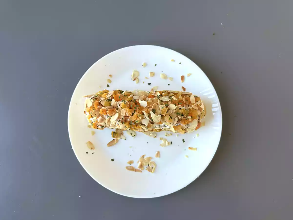 Si vous cherchez une idée d'apéritif originale, cette bûche de fromage frais aux abricots, jambon sec et amandes est exactement ce qu'il vous faut. Le mélange subtil du fromage frais crémeux, des abricots secs légèrement sucrés, des amandes croquantes et du jambon sec légèrement salé crée une harmonie parfaite de saveurs qui ne manquera pas de surprendre vos invités.