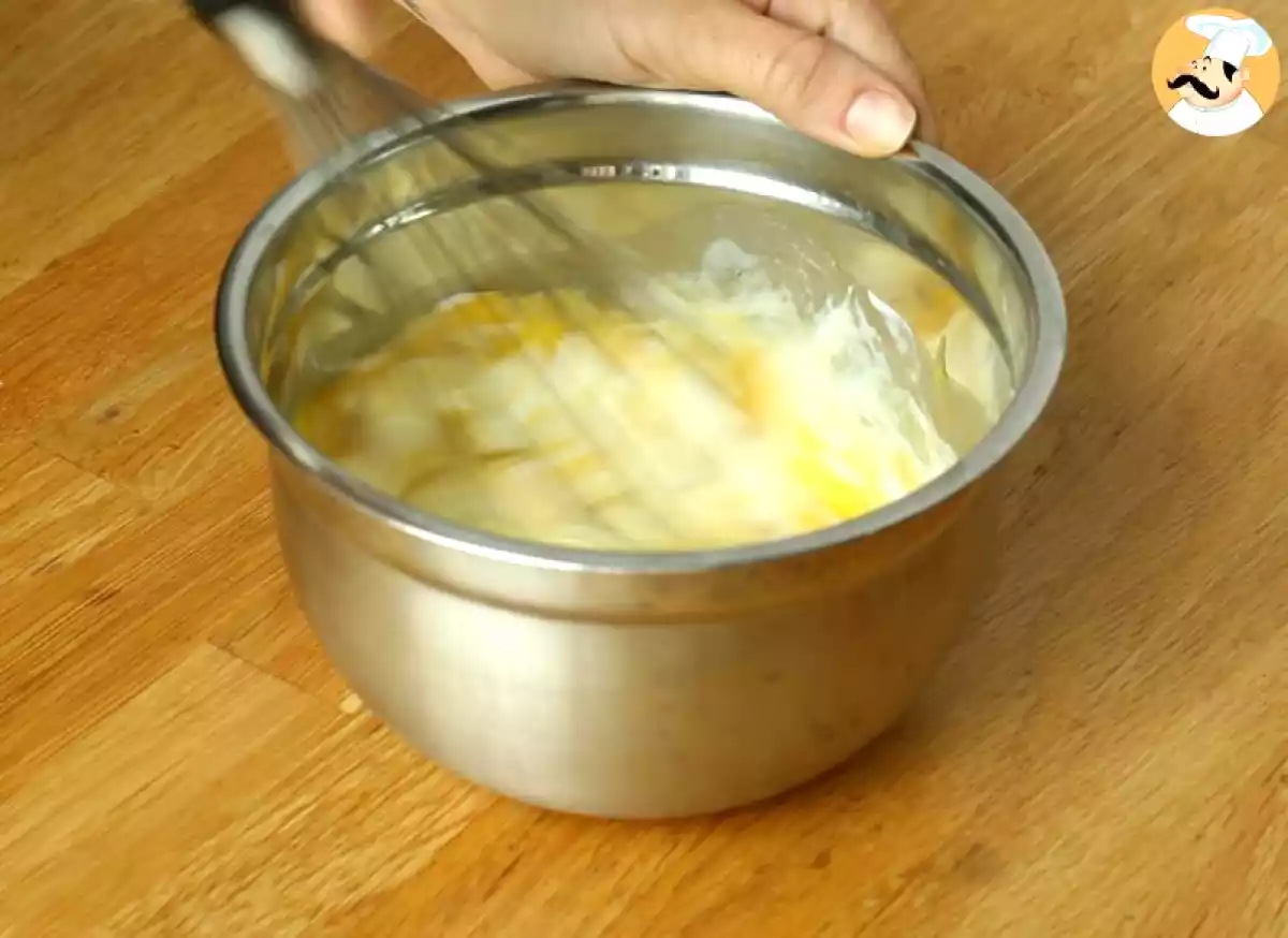 Dans un vol, mélangez les oeufs, la crème, le sel et le poivre. Disposez votre pâte brisée dans un moule à tarte et piquez le fond à l'aide d'une fourchette.