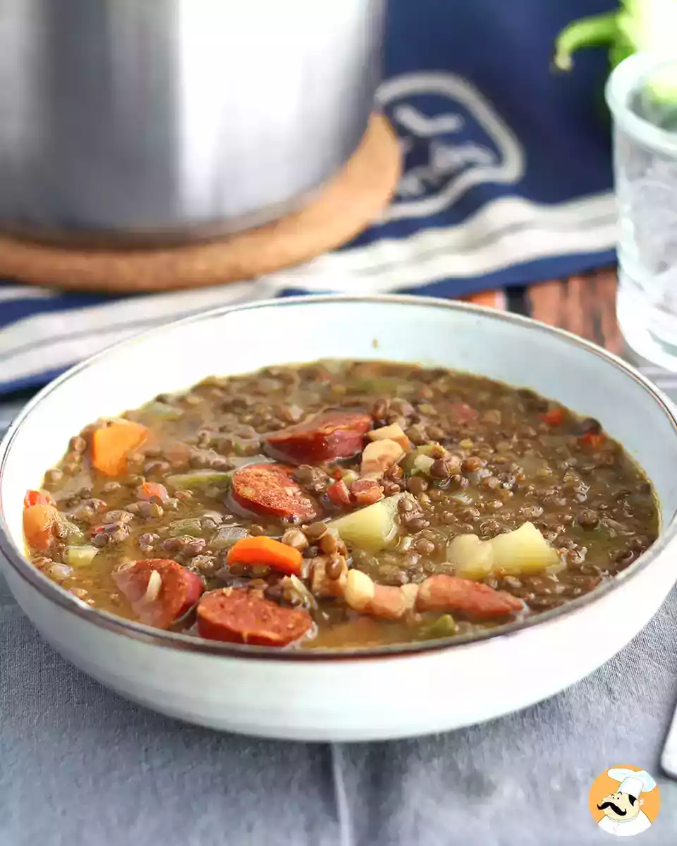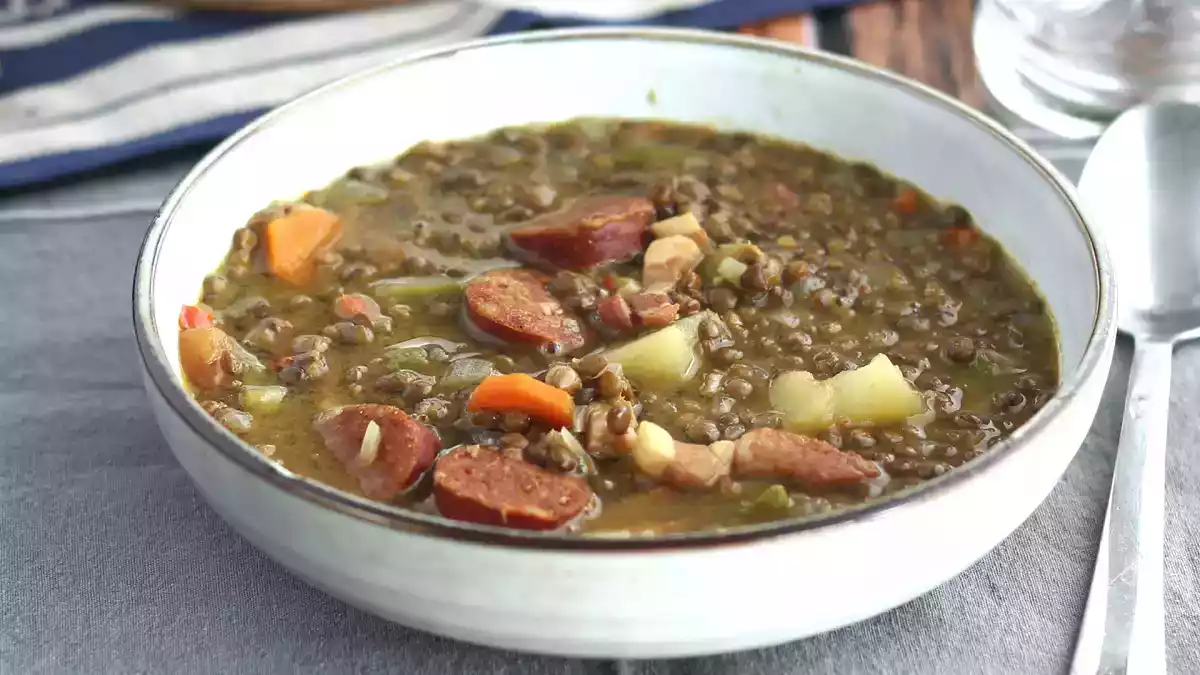 Un plat humble mais nuancé, où les lentilles sont cuites avec du chorizo, du poivre et du laurier, ce qui donne un ragoût épais et nourrissant, transmis de génération en génération dans la cuisine espagnole.