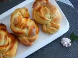 Que des versions maxi ont été présentées jusqu'à présent. Il serait temps de réaliser les brioches en formats individuels, qu'en dîtes-vous? On vous propose donc ici de vous amuser en un tour de main à nouer vos briochettes après les avoir garnies de confiture aux abricots :-)