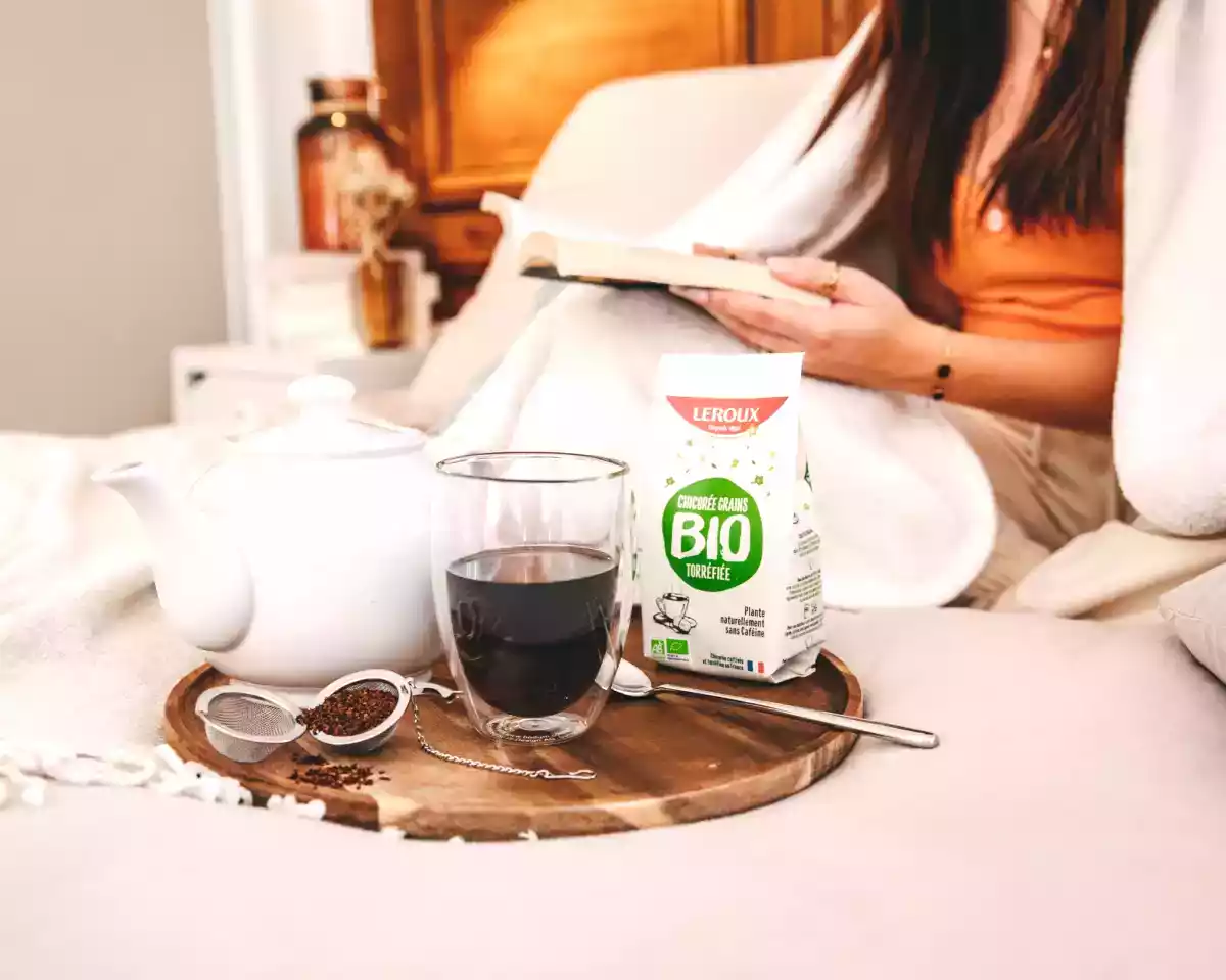 Habituellement consommée en version soluble, moulue ou liquide, découvrez la chicorée en infusion! Associée à de l'eau chaude, du lait ou une autre boisson végétale, ses notes légèrement caramélisées vous séduiront sans aucun doute.