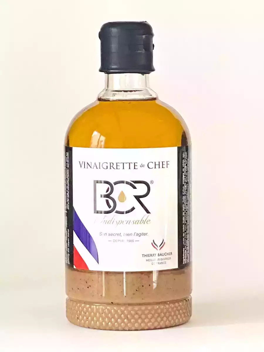 Incomparable, cette recette associant douze ingrédients est désormais disponible à la ventre sous le nom de "BCR la vinaigrette de chef". En formet 500ml, 20ml ou 2L, dans une bouteille végan en canne à sucre biodégradable, vous aurez de quoi sublimer tous vos plats, bien au-delà de la salade ;-)