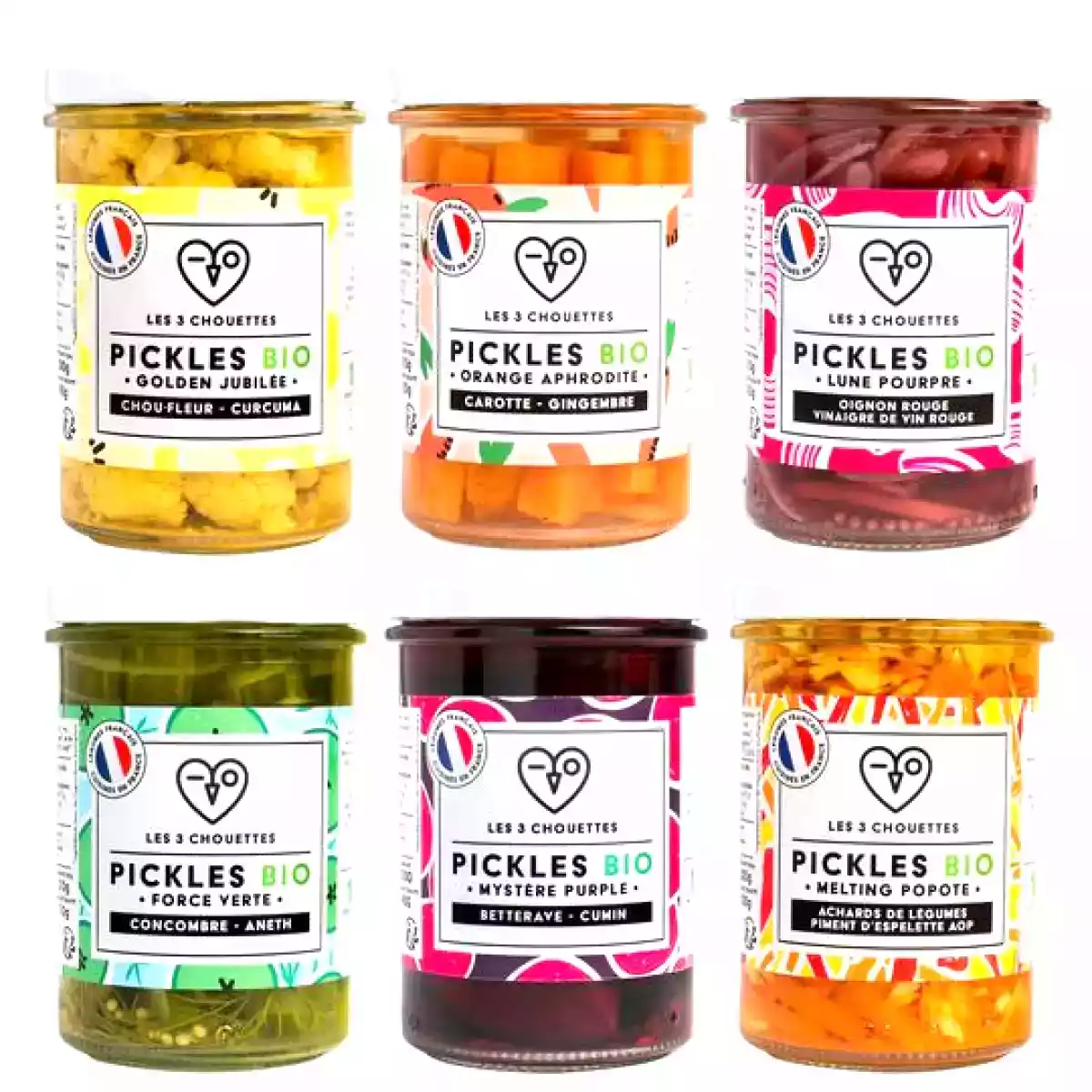 L'objectif de ces deux belles-sœurs est simple: mener la bataille de la relocalisation des condiments. Elles lancent ainsi Les 3 Chouettes en 2016 à destination des épiceries et magasins bio. Au menu: des pickles bio et français. Des légumes frais, cultivés en France par des producteurs bio puis associés à du vinaigre, des épices et des aromates pour un résultat aussi punchy que savoureux!