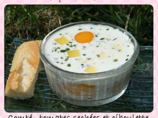 Oeufs cocotte au comté , tomates sechées et ciboulette