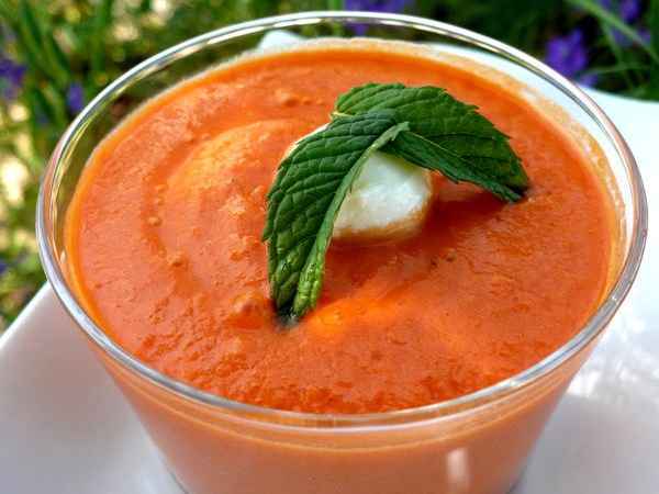 Soupe froide tomate, pastèque, menthe avec ou sans feta