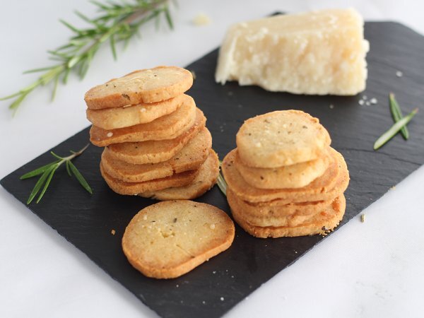 Ces crackers faits maison, subtilement parfumés au parmesan et au romarin, apportent une touche croustillante et raffinée à votre apéritif. Parfaits pour accompagner un verre de champagne et préparer le palais pour la suite du repas!