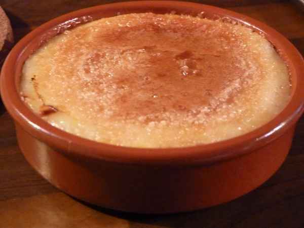 Très réputée en France, la crème catalane passe pour l'équivalent espagnol de la crème brûlée. Elle utilise en effet une base commune: une crème sucrée et vanillée à base d’œufs et de lait, le tout cuit puis caramélisé au chalumeau. Néanmoins quelques nuances la différencient de sa sœur française: elle est généralement parfumée au citron et accompagnée de cannelle.