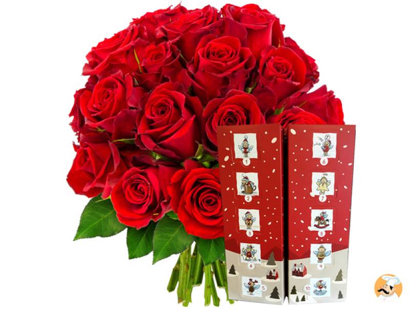 Recevoir un bouquet de fleurs Florajet, ça donne le sourire. Mais le recevoir accompagné d'un calendrier de l'Avent signé Chocolaterie Castelain, en voilà une belle surprise! Chaque matin, après avoir admiré votre bouquet de fleurs, ouvrez votre case du jour et découvrez quelle gourmandise chocolatée le chocolatier Bernard Castelain vous a réservé!