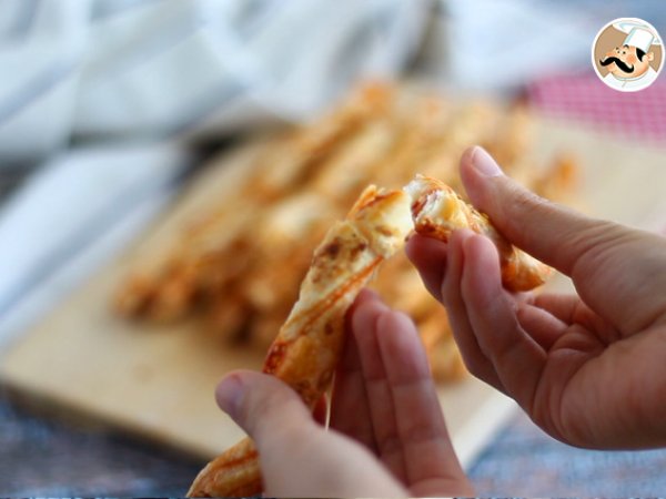La recette la plus facile. Il vous suffira simplement d'étaler de la sauce tomate sur toute la surface de votre pâte, de la couper en bandes puis de les entortiller afin de former de jolies torsades. Suivez les étapes détaillées dans la recette ci-dessous ↓