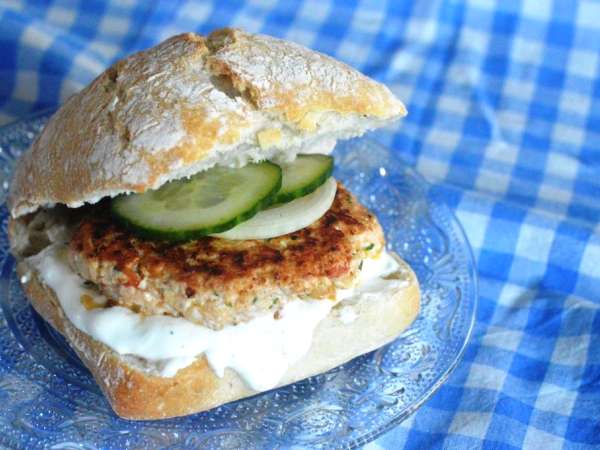 Burger grec et sa sauce façon tzatziki