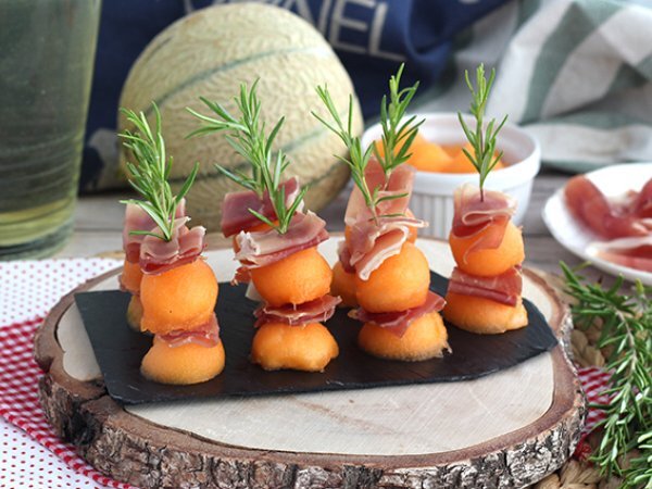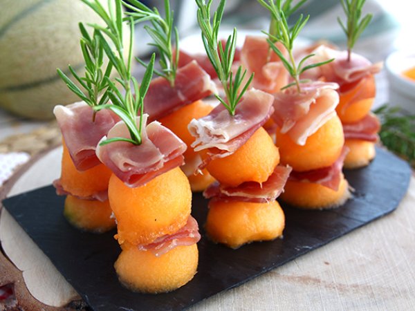 Rassurez-vous, ici les recettes seront très faciles à faire, voire même sans cuisson pour certaines! C'est le cas de nos brochettes apéritives au melon, jambon et romarin! "Des brochettes, ouais bof" nous direz-vous. Sauf qu'au lieu d'utiliser des pics en bois classiques, on les a remplacé par des brins... de romarin! L'occasion de donner des allures champêtres et naturelles à votre recette.