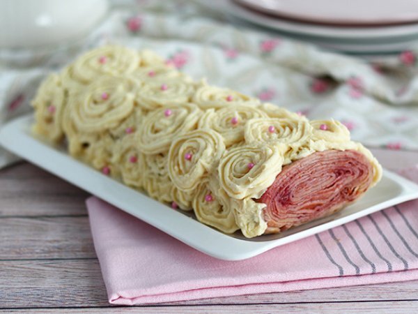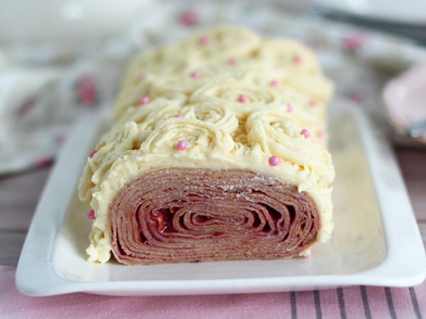 Fines et moelleuses, difficile de résister aux crêpes. Ici on les aime tellement qu'on a décidé d'en faire une bûche! 16 crêpes en tout, garnies de confiture de framboises et surmontées d'une ganache au chocolat blanc. De l'originalité et de la gourmandise pour cette bûche de crêpes!