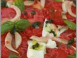 Légère, la Caprese est principalement faite de tomates et de mozzarella. Son goût est relevé par le sel, l'huile d'olive et les feuilles de basilic.