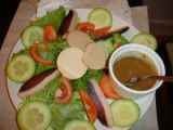 Cette salade a un goût savoureux lorsqu'elle est associée à un vin blanc ou un vin rouge corsé et un pain rond. Elle se consomme en entrée ou en plat de résistance.