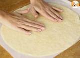 Déroulez votre pâte feuilletée. Étaliez la moitié de la quantité de sucre sur toute la surface puis appuyez légèrement avec vos mains dessus afin qu'il adhère.