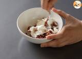 Pendant la cuisson, préparez la farce qui viendra se glisser dans vos carottes feuilletées. Pour cela et dans un bol, mélangez le fromage frais avec les tomates séchées coupées en petits morceaux.