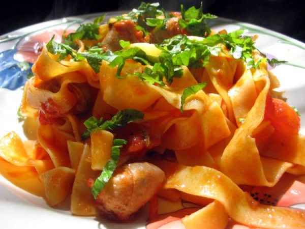 Pâtes à la sauce tomate, saucisse et graines de fenouil