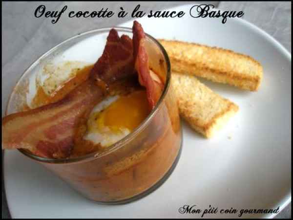 Oeuf cocotte à la sauce basque et son croustillant de ventrêche