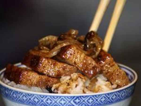 Poitrine de porc caramelisee aux oignons et 5 parfums